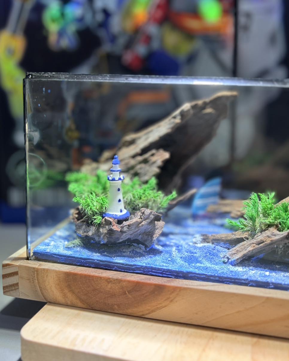 Trong hành trình cuộc đời, đôi khi chúng ta phải đối mặt với "sóng dữ" và thử thách. Tiểu cảnh "Ocean Voyage" (Hải Trình Đại Dương) được Foret Box chế tác với ý tưởng sâu sắc: Dẫu cho bão tố vây quanh, con thuyền vẫn luôn kiên định hướng về Hải Đăng, nơi có bình an và thành công đang chờ đón.